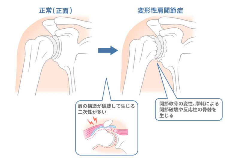 変形性肩関節症は、肩関節の軟骨がすり減り、関節が変形することで痛みや可動域制限を引き起こす疾患です。